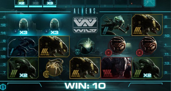 La machine à sous Aliens comporte 5 rouleaux, 3 rangées et 15 lignes de paiement. Le thème, vous le connaissez, ce sont les films Aliens qui, après avoir hanté les salles de cinéma et fait des apparitions dans l’univers des jeux vidéo, s’attaquent aux jeux de casino.